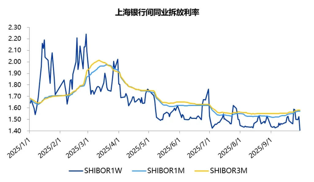 · 中长端利率小幅上行:整个9月,1个月期以上的Shibor利率整体呈现温和上行走势。这反映出市场对中长期流动性的预期保持谨慎,同时也与央行通过MLF和买断式逆回购等工具投放中期基础货币的操作相吻合。